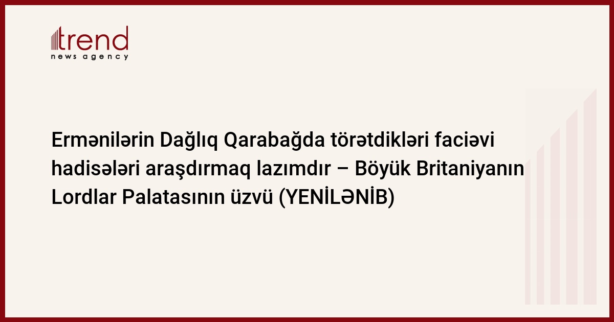 Britaniyalı lord həmçinin Dağlıq Qarabağda minlərlə dinc azərbaycanlının ermənilər tərəfindən qətlə yetirməsi faktını xatırladıb.