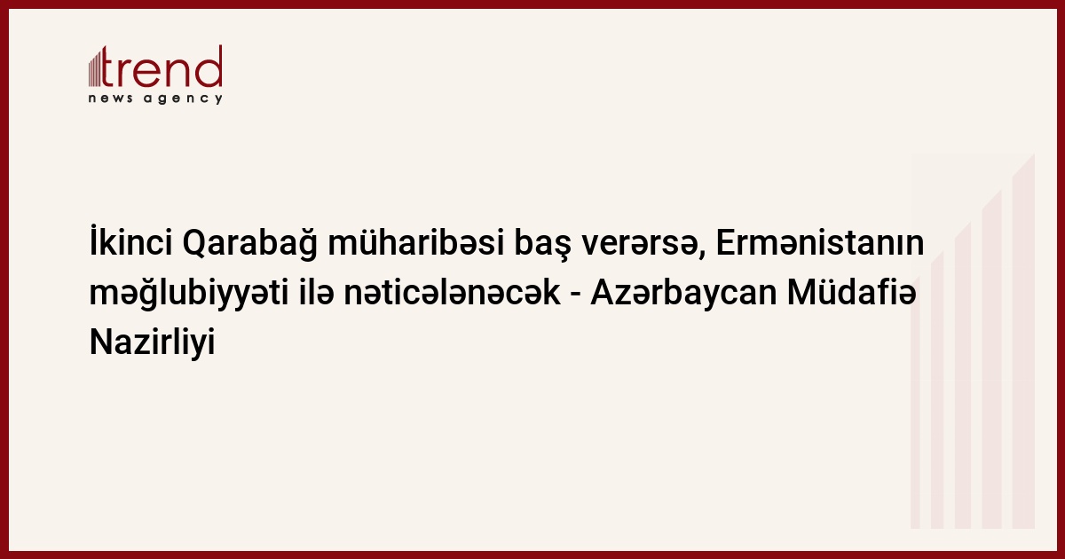 Azərbaycan Müdafiə Nazirliyi bəyan edib ki, ikinci Qarabağ savaşı olacaqsa, Ermənistanın məğlubiyyəti ilə nəticələnəcək.