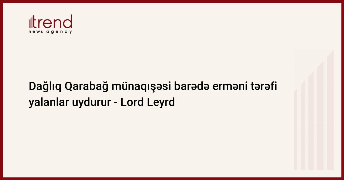 Dağlıq Qarabağ münaqışəsi barədə erməni tərəfi yalanlar uydurur, ona görə də Azərbaycan həqiqətlərinin müxtəlif sivil yollarla dünyaya yayılması çox vacibdir, - Trend-in məlumatına görə, bu barədə "Dinlərarası dialoq: Azərbaycan və konfliktin həlli" mövzusunda Londonda keçirilən konfransda Lord Leyrd bildirib.