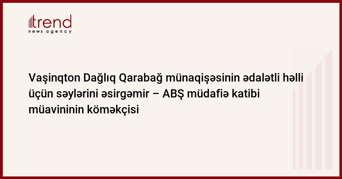 ABŞ Dağlıq Qarabağ münaqişəsinin beynəlxalq hüquq normaları və prinsiplərinə uyğun şəkildə ədalətli həlli üçün səylərini əsirgəmir, - ABŞ müdafiə katibi müavininin köməkçisi xanım Seleste A.Uollander Bakıda Milli Məclis Sədrinin birinci müavini, Təhlükəsizlik və müdafiə komitəsinin sədri Ziyafət Əsgərovla görüşü zamanı deyib, - məlumatı Azərbaycan Parlamentinin rəsmi saytı yayıb.