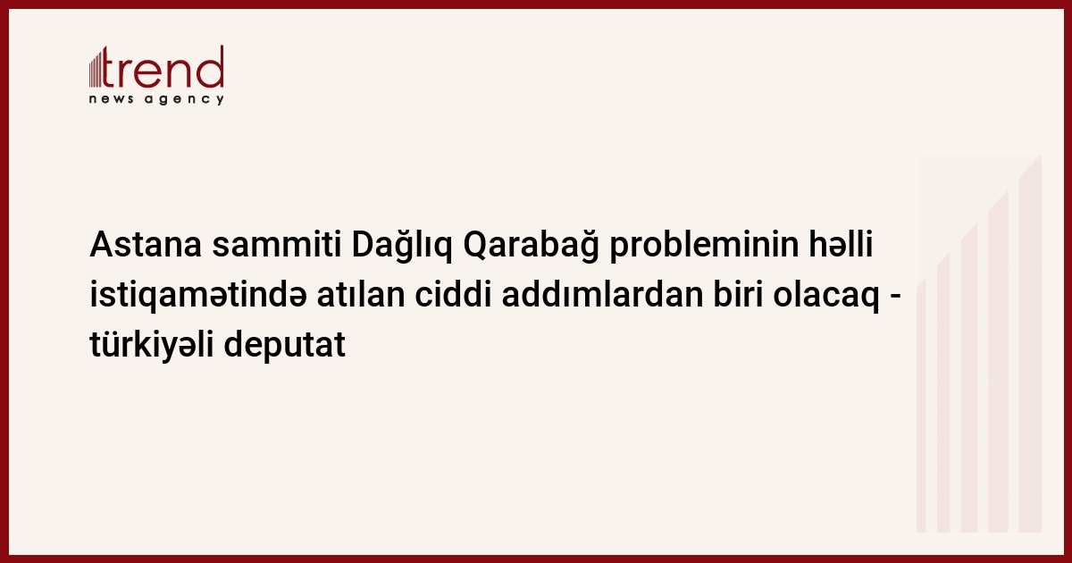 Türkiyə Parlamentinin deputatı hesab edir ki, ATƏT-in Astana sammitində Dağlıq Qarabağ probleminin müzakirəsi münaqişənin həlli üçün mühüm faktor olacaq.