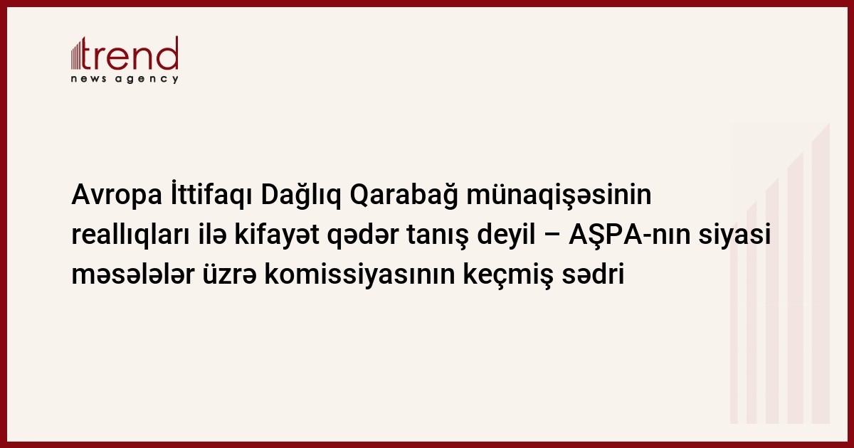 Ermənistan-Azərbaycan, Dağlıq Qarabağ münaqişəsinin fəal iştiraçısına çevrilmək üçün Avropa İttifaqı problemin reallıqları ilə daha yaxşı tanış olmalıdır. Avropa Şurası Parlament Assambleyasının (AŞPA) siyasi məsələlər üzrə komissiyasının keçmiş sədri Qoran Lindblad (Goran Lindblad) belə hesab edir.