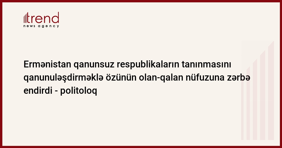 Ermənistan qanunsuz respublikaların tanınmasını qanunuləşdirməyə cəhd göstərməklə özünün olan-qalan nüfuzuna növbəti zərbə endirdi. Azərbaycanlı politoloq, Trend-in Ekspertlər Şurasının üzvü Fikrət Sadıqov Ermənistan prezidentinin "Beynəlxalq müqavilələr haqqında" qanuna dəyişiklikləri imzalamasını şərh edərkən bildirib.
