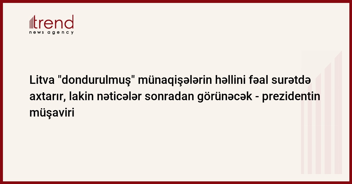 ATƏT-ə sədrlik edən Litva postsovet məkanında "dondurulmuş" münaqişələr üçün həllin axtarışında fəal səylər göstərir, lakin nəticələr xeyli sonra görünəcək. Trend-in məlumatına görə, bu barədə çərşənbə axşamı "Ziniu radijas" radiostansiyasına müsahibəsində Litva Prezidentinin müşaviri Daryus Syamaşka bildirib.