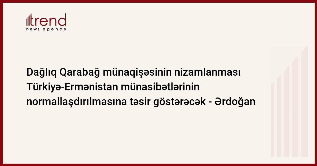 "Ermənistan və Azərbaycan arasında münaqişənin nizamlanması Türkiyə və Ermənistan arasında münasibətlərin normallaşdırılmasında müəyyən rol oynayacaq", - Ərdoğan qeyd edib.