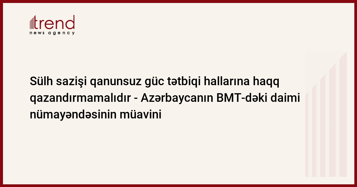 Sülh sazişi qanunsuz güc tətbiqinə gətirib çıxara biləcək vəziyyətlərə haqq qazandırmamalıdır. Onlar, həmçinin soyqırıma, hərbi cinayətlərə, bəşəriyyətə qarşı cinayətlərə və insan haqlarının kobud şəkildə pozulmasına görə amnistiyaya zəmanət vermir. Bunu Vaşinqtonda Azərbaycanın BMT-dəki daimi nümayəndəsinin müavini, müşavir Tofiq Musayev bildirib. Trend-in məlumatına görə, bu barədə BMT TŞ-nin rəsmi saytında deyilir.