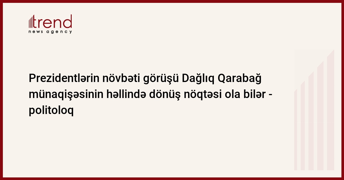 Prezidentlərin növbəti görüşü Dağlıq Qarabağ münaqişəsinin həllində dönüş nöqtəsi ola bilər. Trend-in məlumatına görə, bu barədə Siyasi İnnovasiya və Texnologiyalar Mərkəzinin direktoru Mübariz Əhmədoğlu çərşənbə günü keçirdiyi mətbuat konfransında deyib.