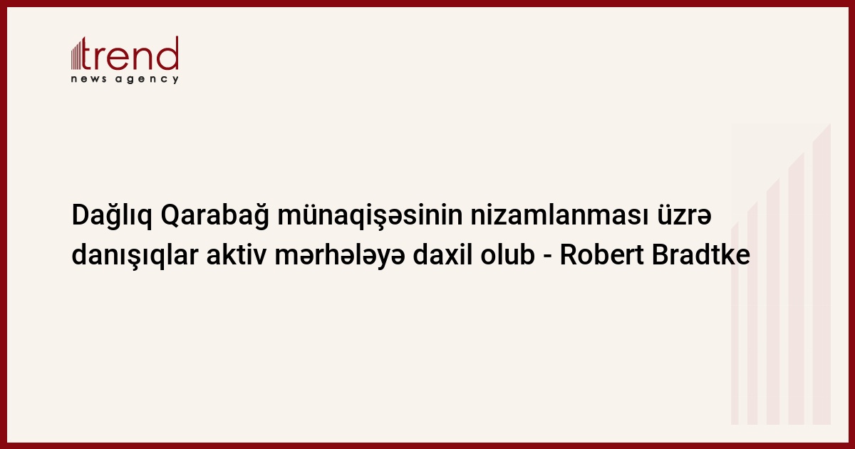Dağlıq Qarabağ münaqişəsinin nizamlanması üzrə danışıqlar prosesi daha aktiv mərhələyə daxil olub və tərəflərin qarşısında münaqişənin həllində irəliləyişə nail olmaq vəzifəsi durur. Trend-in məlumatına görə, bu barədə bazar ertəsi ATƏT-in Minsk qrupunun amerikalı həmsədri Robert Bradtke Yerevanda jurnalistlərlə söhbətində bildirib.