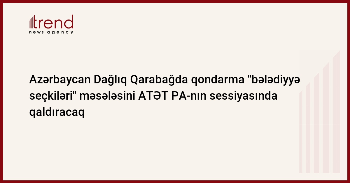 ATƏT-in Parlament Assambleyasının sessiyasında Dağlıq Qarabağda qondarma "bələdiyyə seçkiləri" ilə bağlı Azərbaycanın mövqeyi səsləndiriləcək. Trend-in məlumatına görə, bunu çərşənbə axşamı jurnalistlərə Milli Məclis sədrinin müavini Bahar Muradova bildirib.