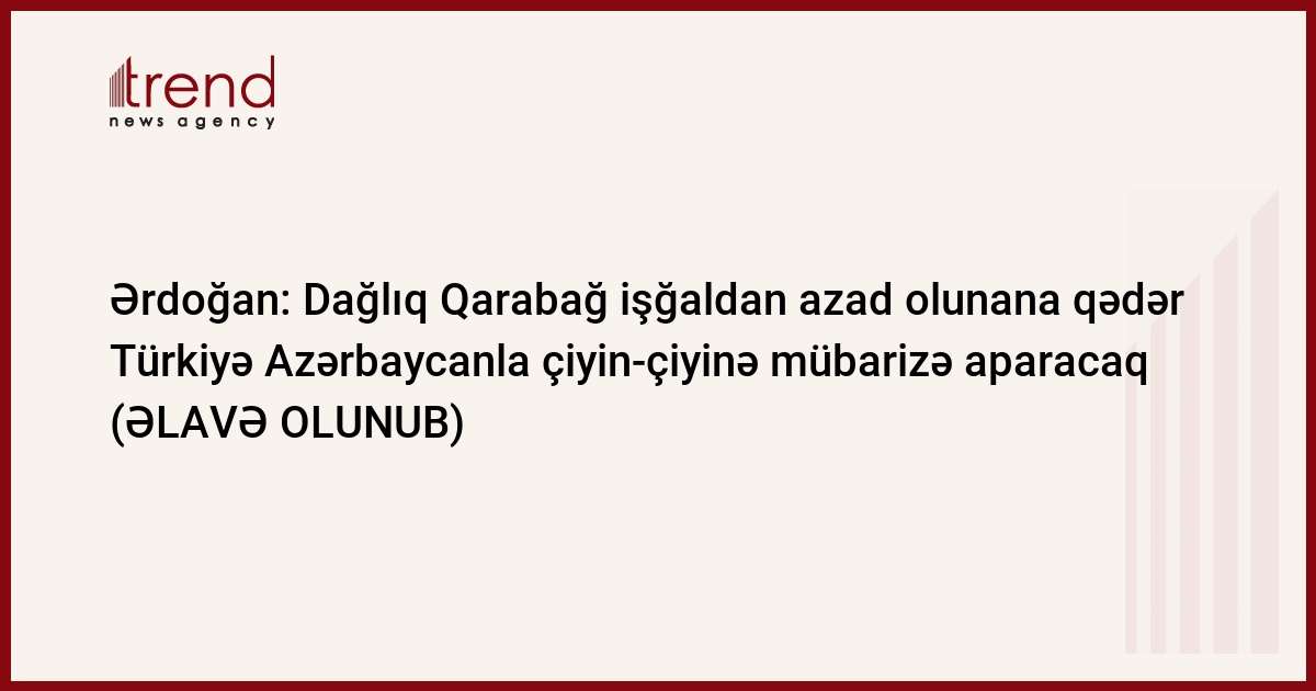 "20 il əvvəl azərbaycanlı qardaşlarımız müstəqilliyini əldə edərkən necə sevindilərsə, Türkiyə də o cür sevindi. Dağlıq Qarabağın işğalı azərbaycanlı qardaşlarımızın ürəyini necə yandırırsa, mənim və hər bir türk vətəndaşının ürəyini də eləcə yandırır", - Ərdoğan bildirib.