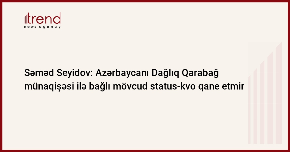 Azərbaycanı Dağlıq Qarabağ münaqişəsi ilə bağlı mövcud status-kvo qane etmir və Minsk qrupunun həmsədrləri bunu nəzərə almalıdırlar. Trend-in məlumatına görə, bunu şənbə günü jurnalistlərə Azərbaycanın AŞPA-dakı nümayəndə heyətinin rəhbəri, deputat Səməd Seyidov deyib.