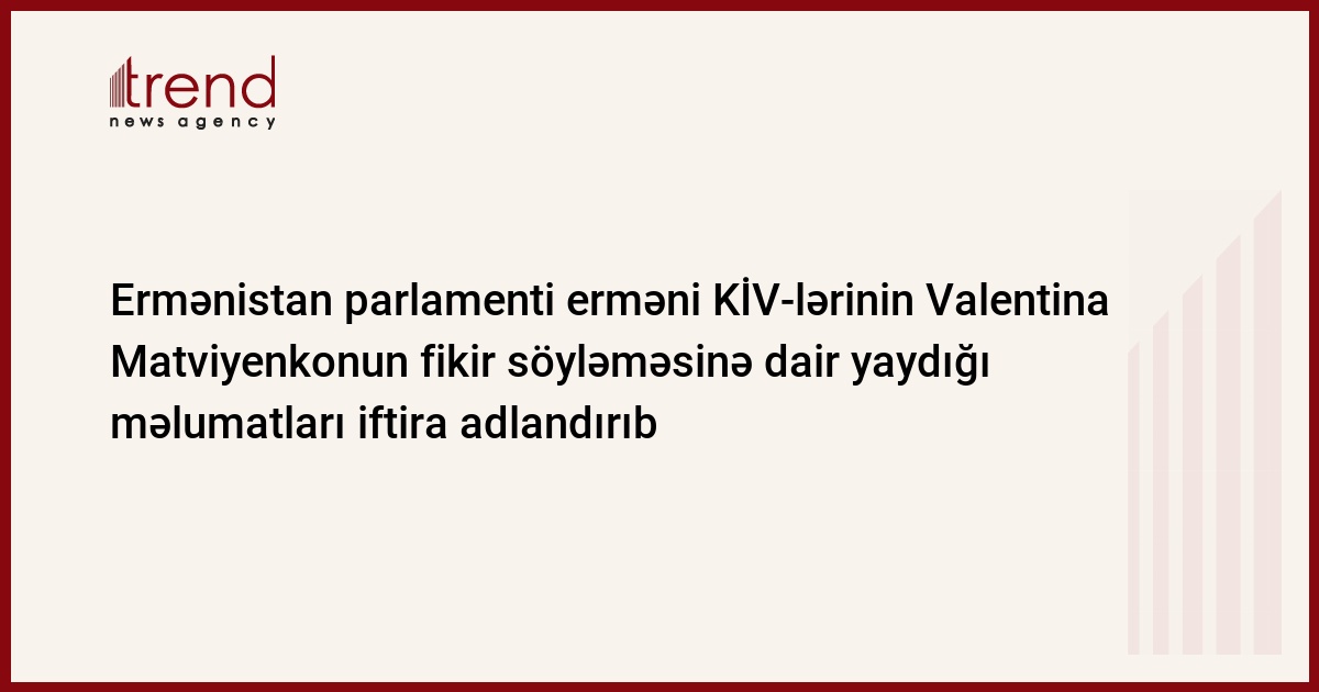 Rusiya Federasiya Şurasının sədri Valentina Matviyenko iyulun 11-də Ermənistan Respublikasında səfərdə olan zaman Dağlıq Qarabağ konflikti haqqında "hər hansı bir bəyanat verməyib". Bu barədə İTAR-TASS agentliyi Ermənistan parlamentinin KİV və ictimaiyyətlə əlaqələr idarəsinin cümə günü yayıdığı bəyanatına istinadən xəbər yayıb.