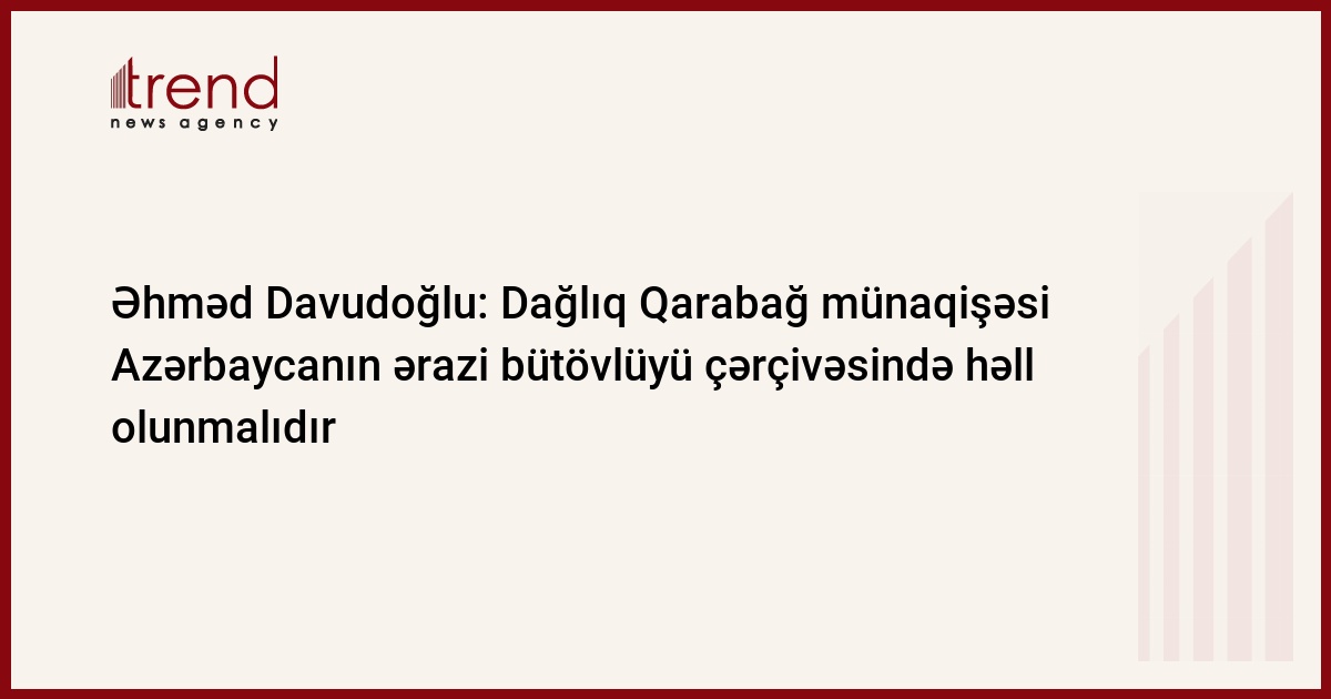 BMT-nin Baş Assambleyasının 67-ci sessiyasında çıxış edən Türkiyənin xarici işlər naziri Əhməd Davudoğlu bir daha Dağlıq Qarabağ məsələsində ölkəsinin mövqeyini təsdiq edib.