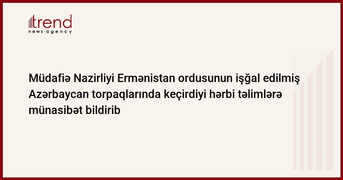 Azərbaycan Müdafiə Nazirliyi Ermənistan Silahlı Qüvvələrinin işğal etdiyi Azərbaycan torpaqlarında keçirdiyi hərbi təlimlərə və bu təlimdə Ermənistanın Prezidenti Serj Sarkisyanın iştirakına münasibət bildirib.