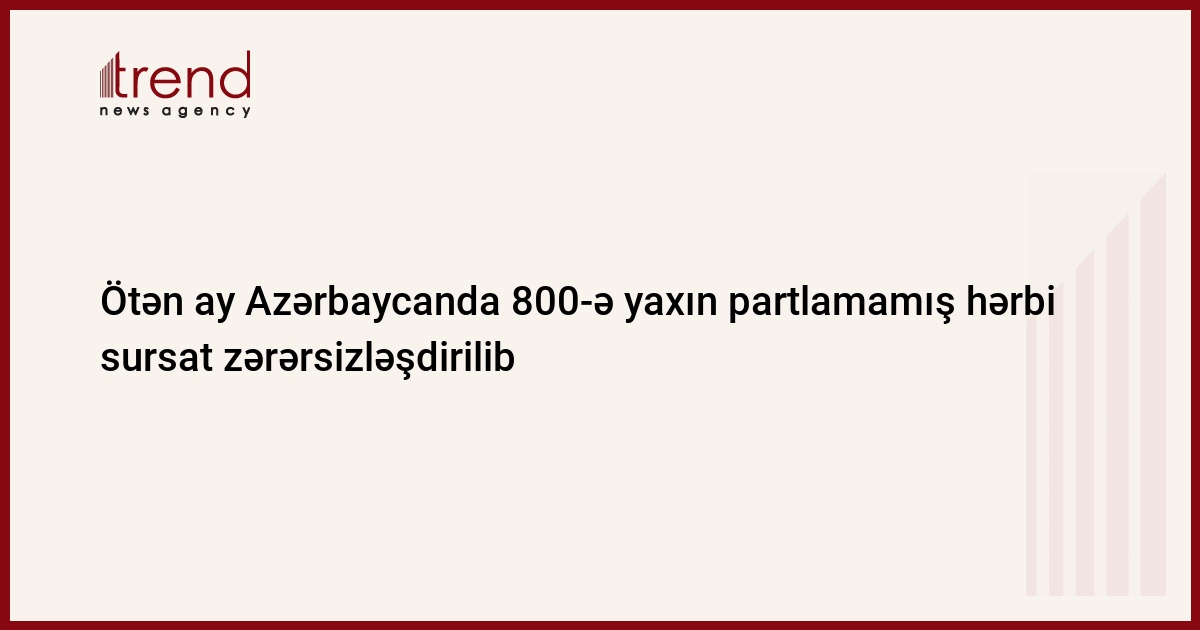 Ötən ay ərzində 3 milyon 713 min 25 kvadrat metr ərazi yoxlanılıb, mina və partlamamış hərbi sursatdan (PHS) təmizlənib.