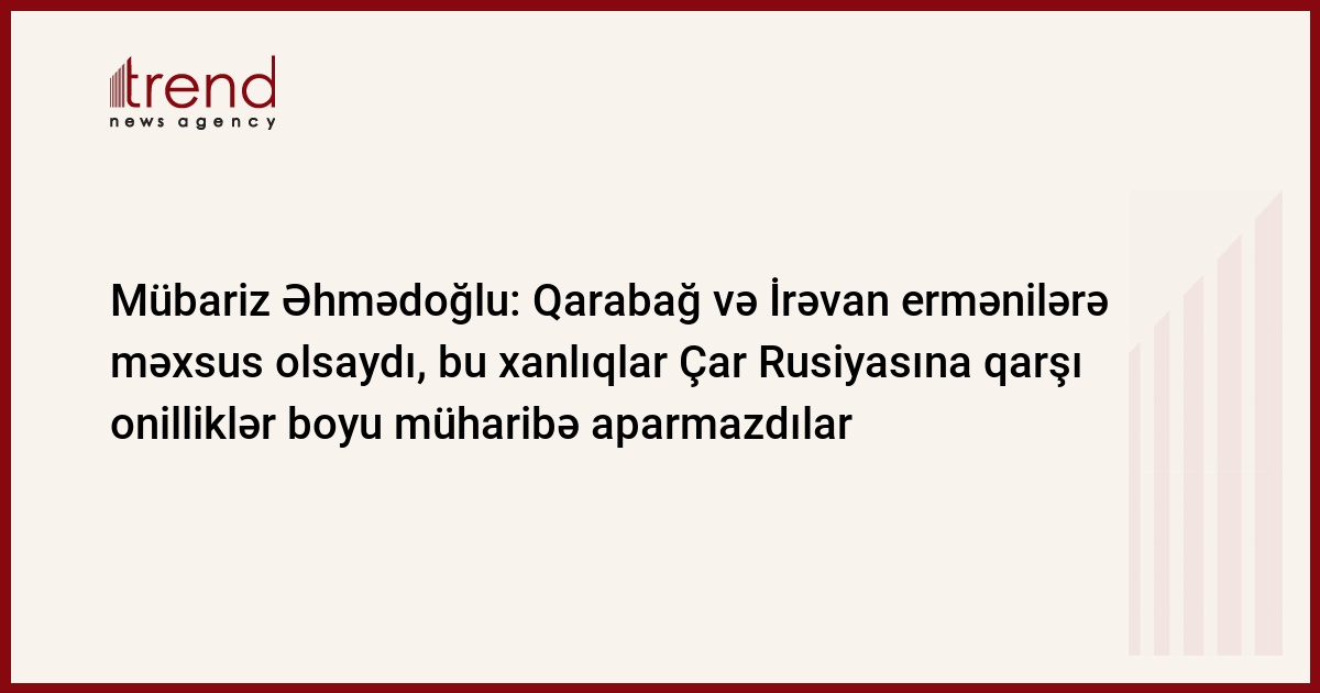 "Yerevan şəhərinin bu gün qalası yoxdur. Çünki qala bu şəhərin yaranma tarixini göstərir. Ona görə də ermənilər onların əleyhinə şəhadətlik edən arqumenti dağıtmaqla sıradan çıxardılar. Çox mühüm məsələlərdən biri odur ki, həm Yerevan, həm də Qarabağın Rusiyaya keçməsi irili-xırdalı 10-a yaxın müharibə ilə müşayiət olunub. Rusiya ilə İran arasında iki müharibə sülh sazişləri ilə rəsmiləşdirilib. Ermənilərin tarixindən belə başa düşülür ki, min illər boyu ermənilər rusların strateji müttəfiqi olublar. O zaman ortalığa sual çıxır. Rusların strateji müttəfiqi olan ermənilər niyə 200 il bundan qabaq amansız şəkildə Çar Rusiyasına qarşı vuruşublar. Əgər ermənilər həmin ərazilərdə yaşayırdılarsa, deməli onlar müsəlmanlarla əhatə olunmuşdular və xristian rusların həmin əraziyə gəlməsi onların marağına idi. Serj Sərkisyanın məntiqindən belə alınır ki, ermənilər Çar Rusiyasının şərqə doğru irəliləməsinə qarşı vuruşmaqla öz maraqlarına qarşı çıxmış olurlar", - Əhmədoğlu əlavə edib.
