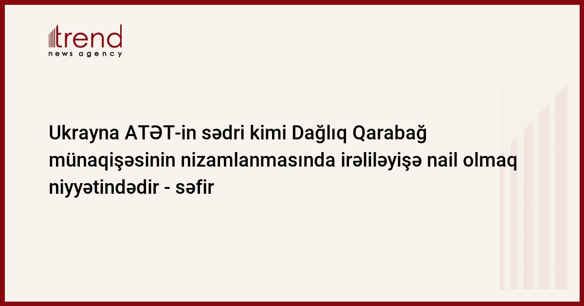 Ukrayna ATƏT-in sədri kimi Dağlıq Qarabağ münaqişəsinin nizamlanması prosesində irəliləyişə nail olmaq niyyətindədir.