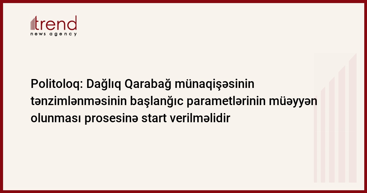 Dağlıq Qarabağ münaqişəsinin tənzimlənməsinin başlanğıc parametlərinin müəyyən olunması prosesinə start verilməlidir. Trend-in məlumatına görə, bu barədə Siyasi İnnovasiya və Texnologiya Mərkəzinin direktoru, politoloq Mübariz Əhmədoğlu bu gün keçirdiyi mətbuat konfransında deyib.