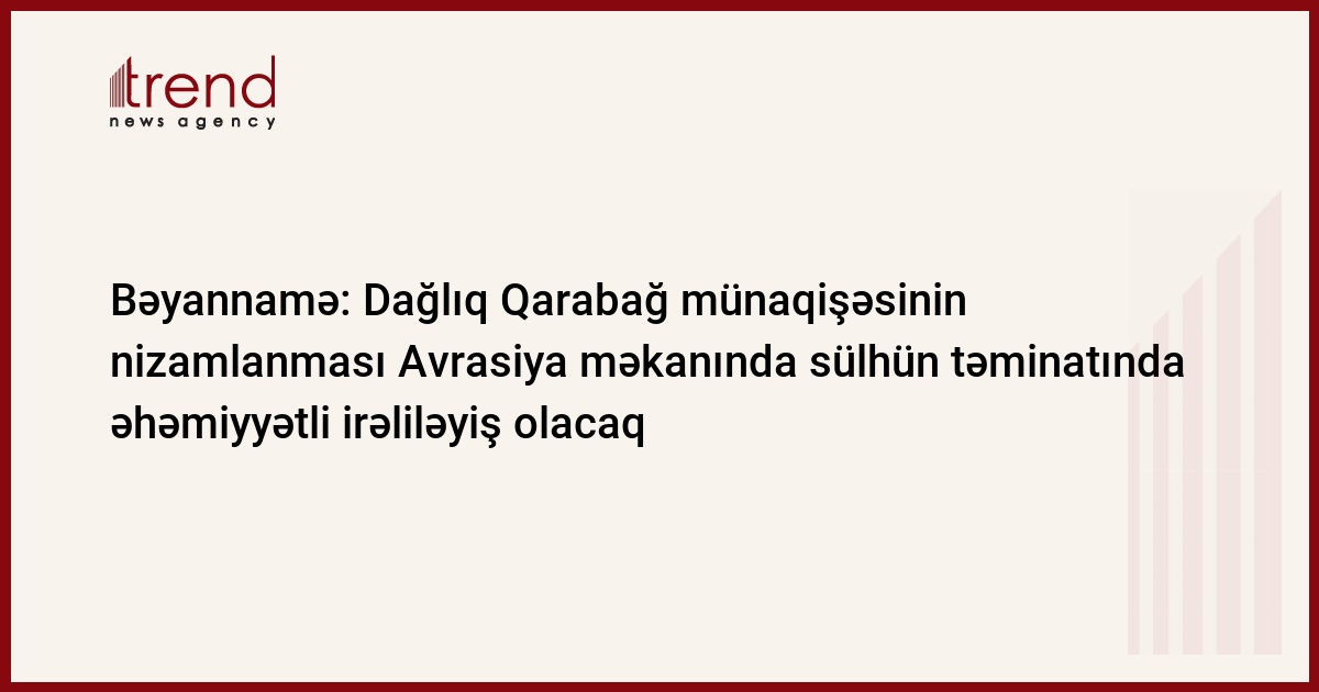 Ermənistan-Azərbaycan, Dağlıq Qarabağ münaqişəsinin nizamlanması Avrasiya məkanında sülhün, sabitliyin və çiçəklənmənin təminatında əhəmiyyətli irəliləyiş olacaq. Trend-in məlumatına görə, bu barədə Qəbələ şəhərində keçirilən Türkdilli Dövlətlərin Əməkdaşlıq Şurasının III Zirvə toplantısının yekunlarına dair qəbul olunan bəyannamədə bildirilir.