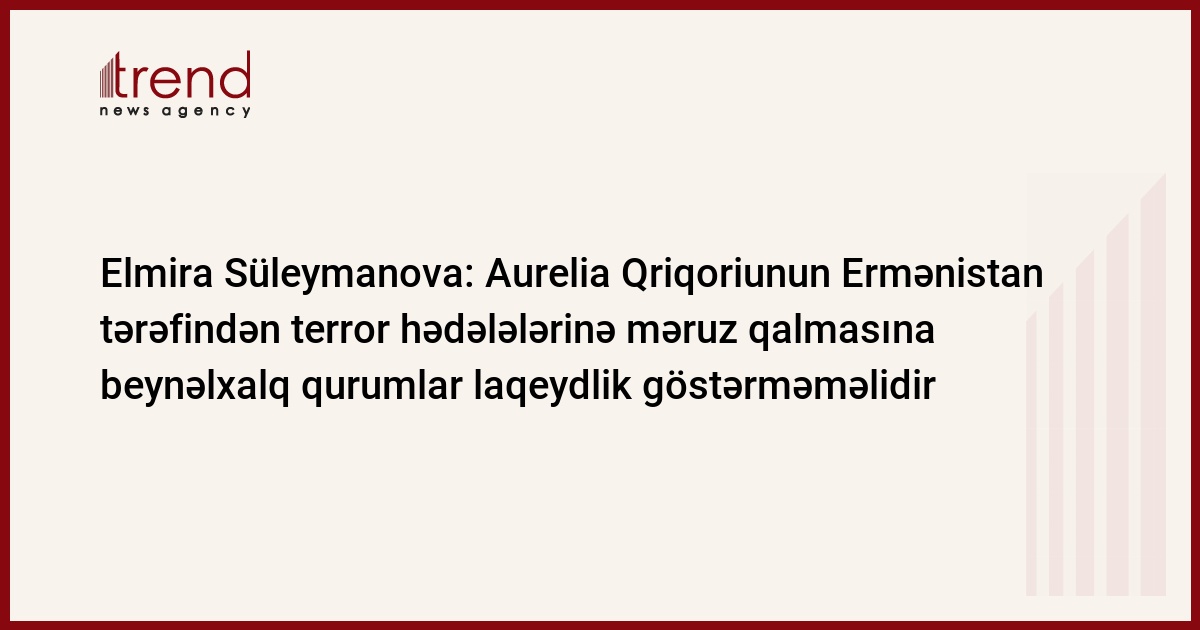 Moldovalı ombudsman xanım Aurelia Qriqoriunun Ermənistan tərəfindən təhdid, təzyiq və terror hədələlərinə məruz qalması ilə bağlı məsələyə heç bir beynəlxalq qurum laqeyd qalmamalıdır. Trend xəbər verir ki, bunu jurnalistlərə açıqlamasında Azərbaycan Respublikasının İnsan hüquqları üzrə Müvəkkili (Ombudsman) Elmira Süleymanova bildirib.