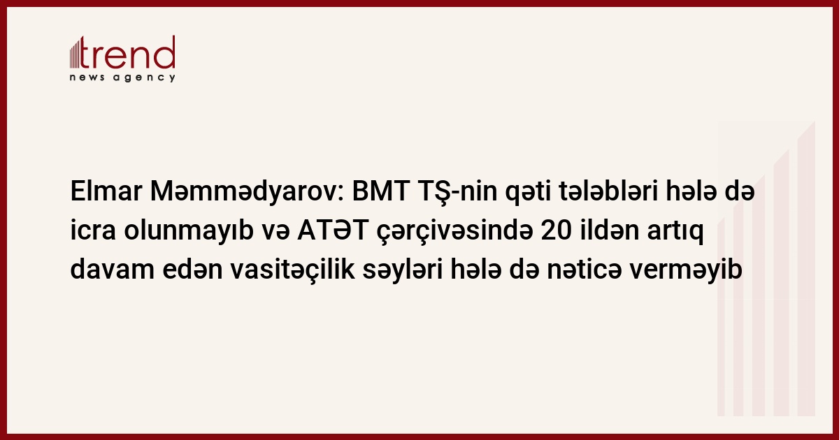XİN başçısı söyləyib ki, işğalçı qüvvələrin işğal olunmuş Azərbaycan ərazilərindən çıxarılması kimi TŞ-nin qəti tələbləri hələ də icra olunmayıb və ATƏT çərçivəsində 20 ildən artıq davam edən vasitəçilik səyləri hələ də nəticə verməyib.