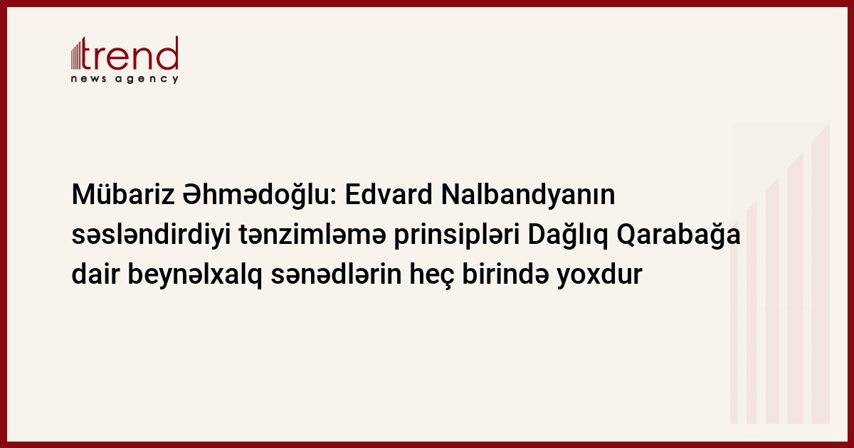 Edvard Nalbandyanın səsləndirdiyi tənzimləmə prinsipləri Dağlıq Qarabağa dair beynəlxalq sənədlərin heç birində yoxdur. Bu barədə Trend-ə Siyasi İnnovasiya və Texnologiya Mərkəzinin direktoru, politoloq Mübariz Əhmədoğlu deyib.
