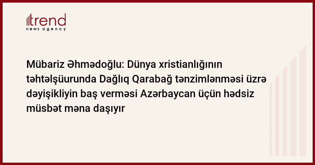 Xristian dünyasının Azərbaycana münasibətində mühüm və qarşılıqlı faydalı dəyişikliklər baş verir. Bunu Trend-ə Siyasi İnnovasiya və Texnologiyalar Mərkəzinin sədri, politoloq Mübariz Əhmədoğlu deyib.