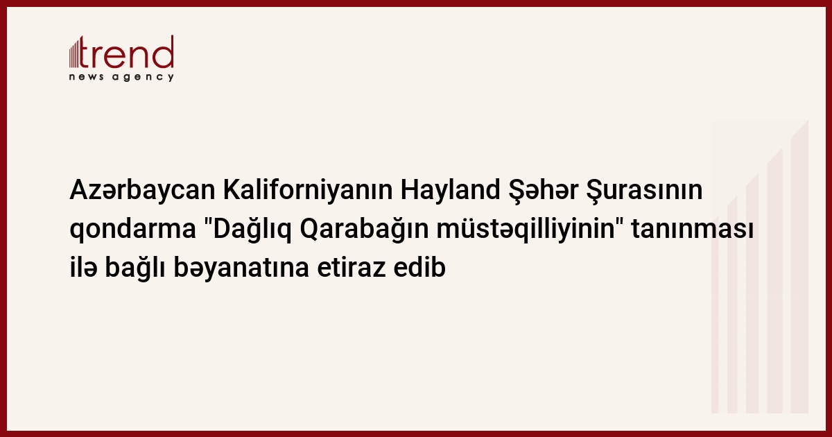 Erməni mətbuatının sevinclə yaydığı məlumata əsasən, Kaliforniyada yerləşən cırtdan Hayland şəhərinin Şurası iki bəyanat qəbul edibr: birinci bəyanat qondarma "Dağlıq Qarabağın müstəqilliyinin tanınması", ikinci bəyanat isə "Dağlıq Qarabağın Berdzor şəhəri ilə qardaşlaşmış şəhərlər əlaqələrinin təsis olunması" barədədir.
