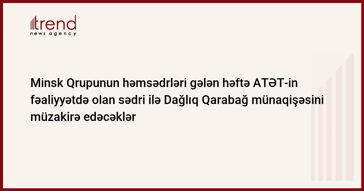 ATƏT-in Minsk qrupunun həmsədrləri Ceyms Uorlik (ABŞ), İqor Popov (Rusiya) və Jak For (Fransa) gələn həftə İsveçrənin paytaxtı Bern şəhərində ATƏT-in fəaliyyətdə olan sədri, İsveçrənin xarici işlər naziri Didye Burkhalter ilə görüşəcəklər. Bu barədə Trend-ə diplomatik mənbədən məlumat verilib.