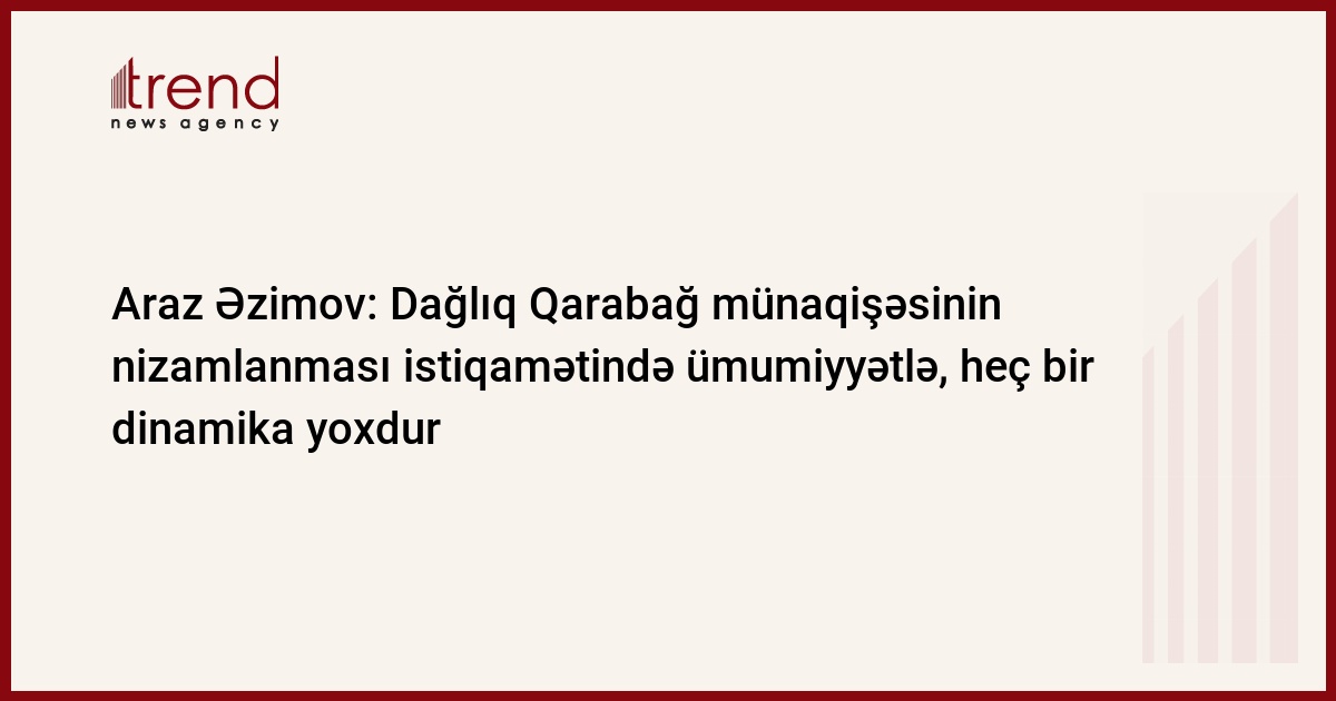 "Dağlıq Qarabağ münaqişəsinin nizamlanması istiqamətində hazırda ümumiyyətlə, ya mənfi, ya da müsbət - heç bir dinamika yoxdur". Trend-in məlumatına görə, bunu xarici işlər nazirinin müavini Araz Əzimov jurnalistlərə açıqlamasında bildirib.