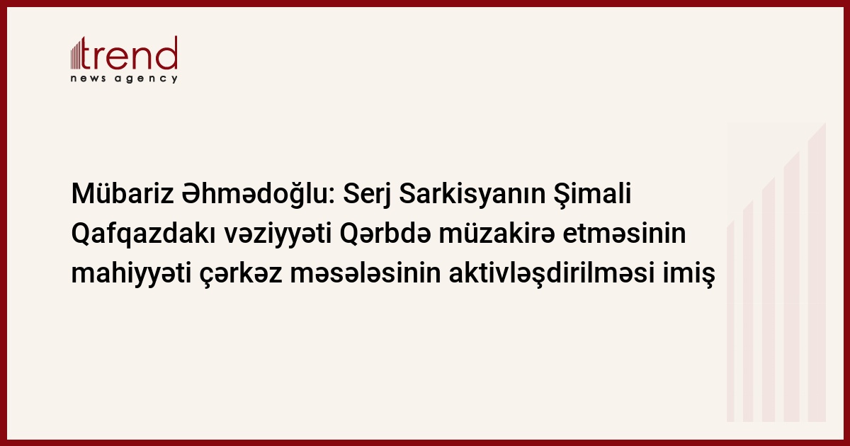 "Ermənistanda "erməni və çərkəz soyqırımları"nın qarşılıqlı tanınması barədə sənəd imzalandı. Prezident Serj Sarkisyan yaxın adamını bu işin təşkilinə qoşmaqla, imzalanmadan sonra susmaqla buna razılığını bildirdi. O, çərkəz məsələsinin RF üçün nə demək olduğunu çox gözəl bilir". Bunu Trend-ə Siyasi İnnovasiya və Texnologiyalar Mərkəzinin direktoru, politoloq Mübariz Əhmədoğlu deyib.