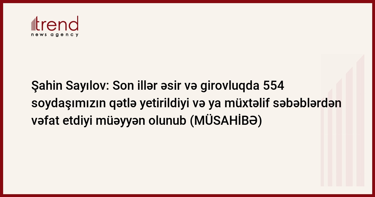 Əsir və itkin düşmüş, girov götürülmüş vətəndaşlarla əlaqədar Dövlət Komissiyasının katibi Şahin Sayılovun Trend-ə müsahibəsi