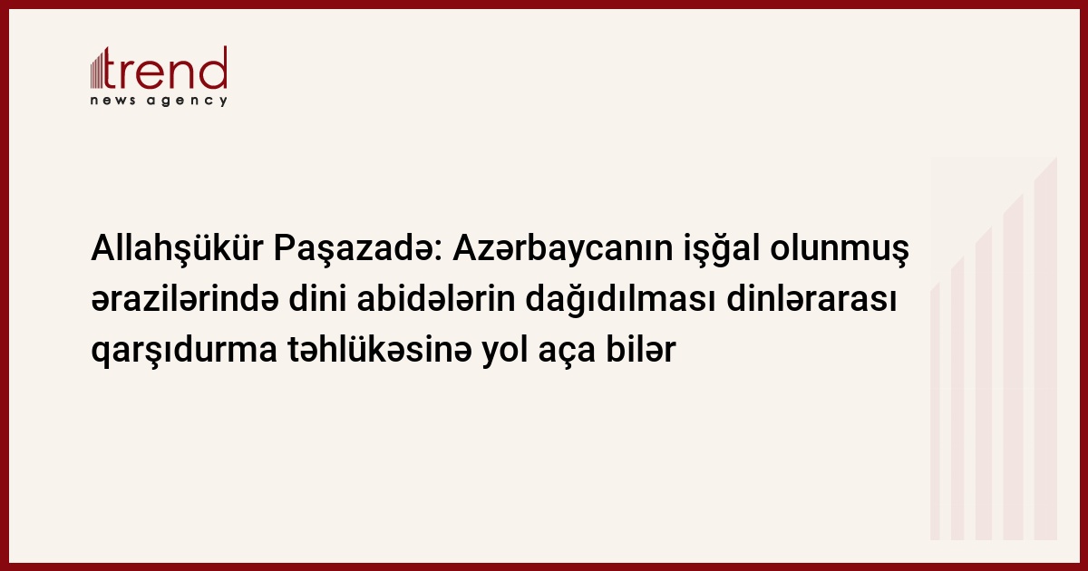 Trend xəbər verir ki, bunu Qafqaz Müsəlmanları İdarəsinin (QMİ) sədri Şeyxülislam Allahşükür Paşazadə ABŞ-ın paytaxtı Vaşinqtonda keçirilən "ABŞ-Azərbaycan: gələcəyə baxış" Forumunun "Dialoqun möhkəmləndirilməsi - tolerantlığın təşviq olunması" mövzusundakı IV sessiyasında çıxışı zamanı deyib.