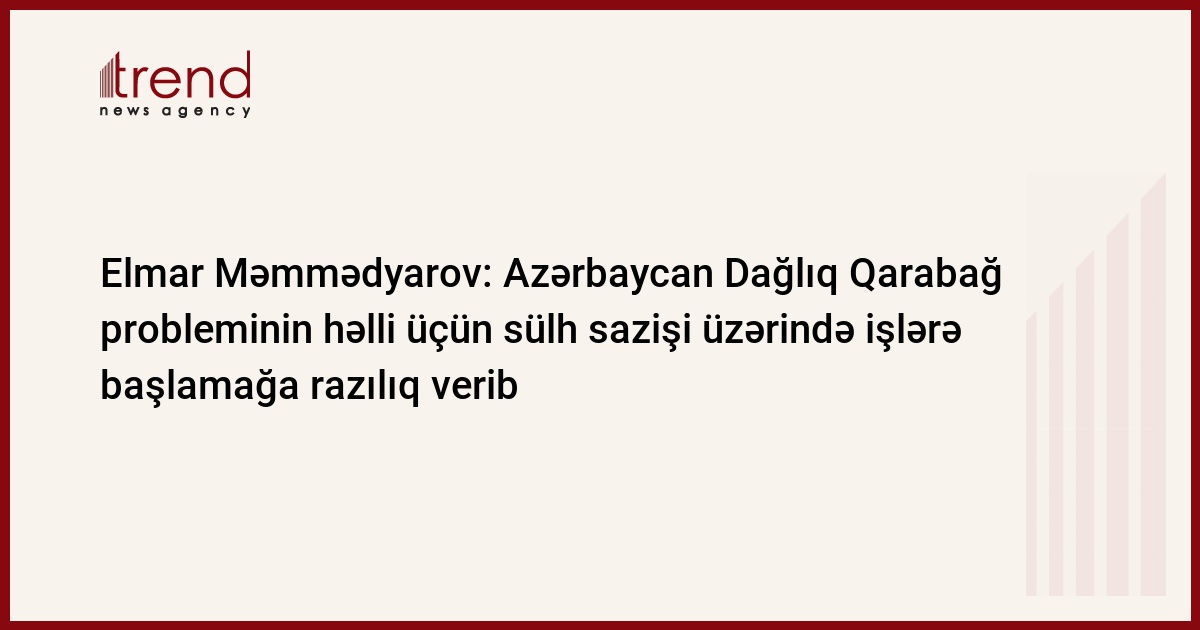 Nazir bildirib ki, Azərbaycan tərəfi Dağlıq Qarabağ probleminin həlli üçün sülh sazişi üzərində işlərə başlamağa razılığını verib.