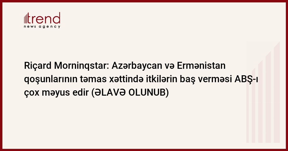 Trend-in məlumatına görə, bunu ABŞ-ın Azərbaycandakı səfiri Riçard Morninqstar erməni kəşfiyyat-diversiya qrupunun mayın 21-dən 22-nə keçən gecə cəbhənin Füzuli rayonu ərazisində, müdafiənin ön xəttində yerləşən Azərbaycanın mövqelərindəki postlardan birinə basqın etməyə cəhdini şərh edərkən deyib.