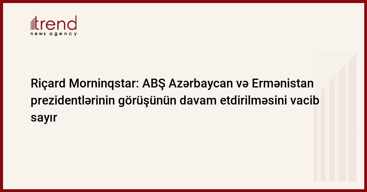 "Ümid edirəm ki, Azərbaycan və Ermənistan prezidentlərinin görüşü tezliklə baş tutacaq". Trend-in məlumatına görə, bu barədə ABŞ-ın Azərbaycandakı səfiri Riçard Morninqstar Azərbaycan və Ermənistan prezidentləri İlham Əliyev və Serj Sarkisyanın növbəti görüşünün baş tutma ehtimalını şərh edərkən deyib.