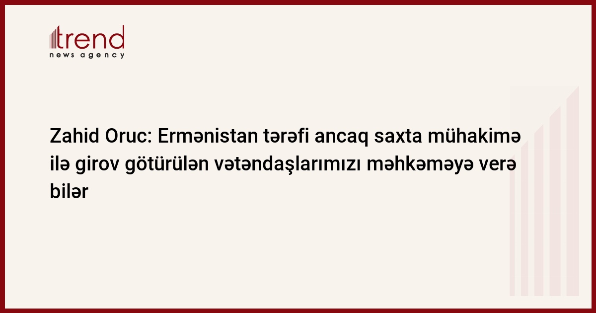 Ermənistan tərəfi ancaq saxta mühakimə ilə işğal altında olan Kəlbəcərdə erməni silahlı qüvvələri tərəfindən girov götürülən azərbaycanlıları məhkəməyə verə bilər. Bunu Trend-ə Milli Məclisin Təhlükəsizlik və müdafiə komitəsinin üzvü Zahid Oruc deyib.