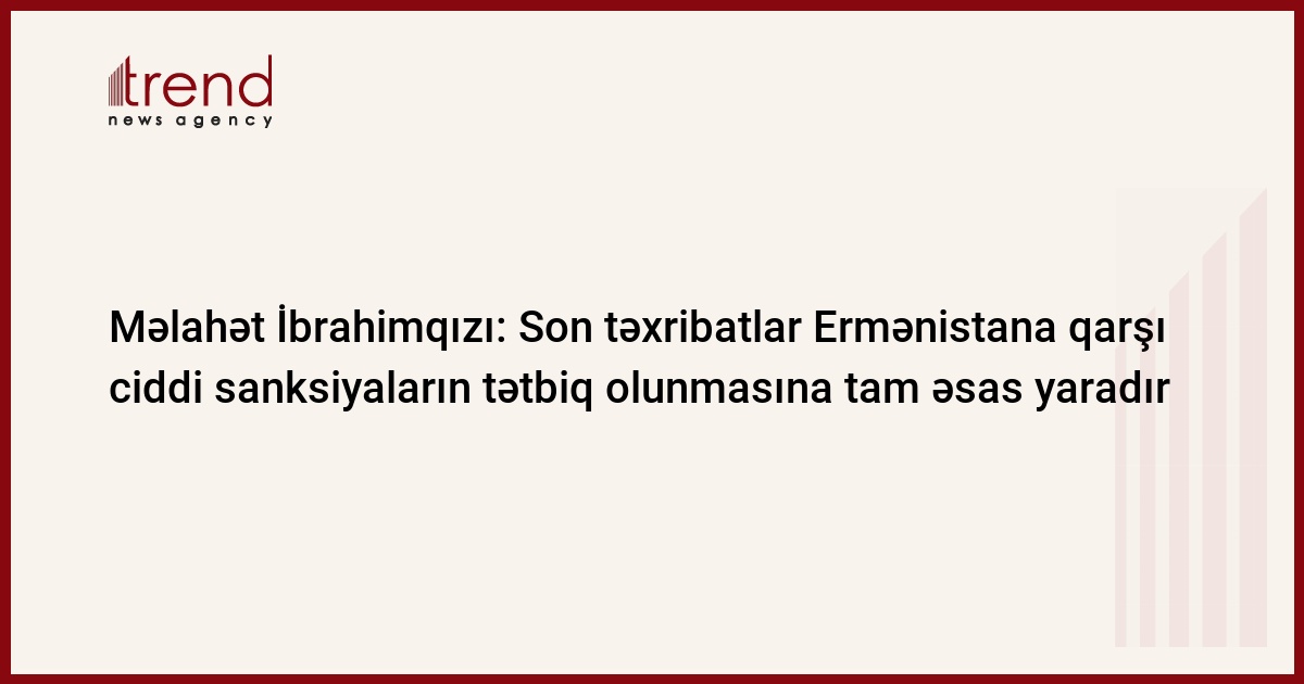 Ermənistanın cəbhədə törətdiyi son təxribatlar ona qarşı ciddi sanksiyaların tətbiq olunmasına tam əsas yaradır. Bu barədə Trend-ə millət vəkili Məlahət İbrahimqızı deyib.