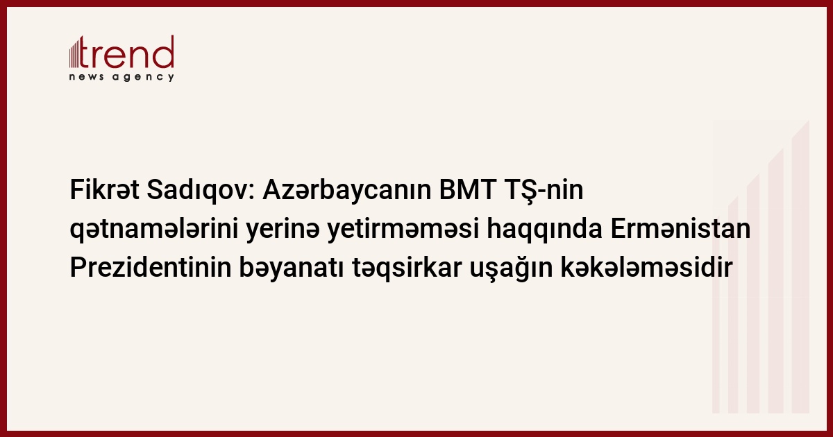Sadıqov bazar günü Soçidə Azərbaycan, Rusiya və Ermənistan prezidentlərinin üçtərəfli görüşünün nəticələrini şərh edərkən Trend-ə bildirib: "Azərbaycanı BMT TŞ-nin Ermənistanın işğal olunmuş Azərbaycan ərazilərini azad etməsinə dair qətnamələrini yerinə yetirməməkdə ittiham etmək Azərbaycanı Yaxın Şərq problemi və ya Fələstin-İsrail nizamlanması üzrə qətnamələri yerinə yetirməməkdə günahlandırmağa bərabərdir. Bu tamamilə cəfəngiyyat idi".