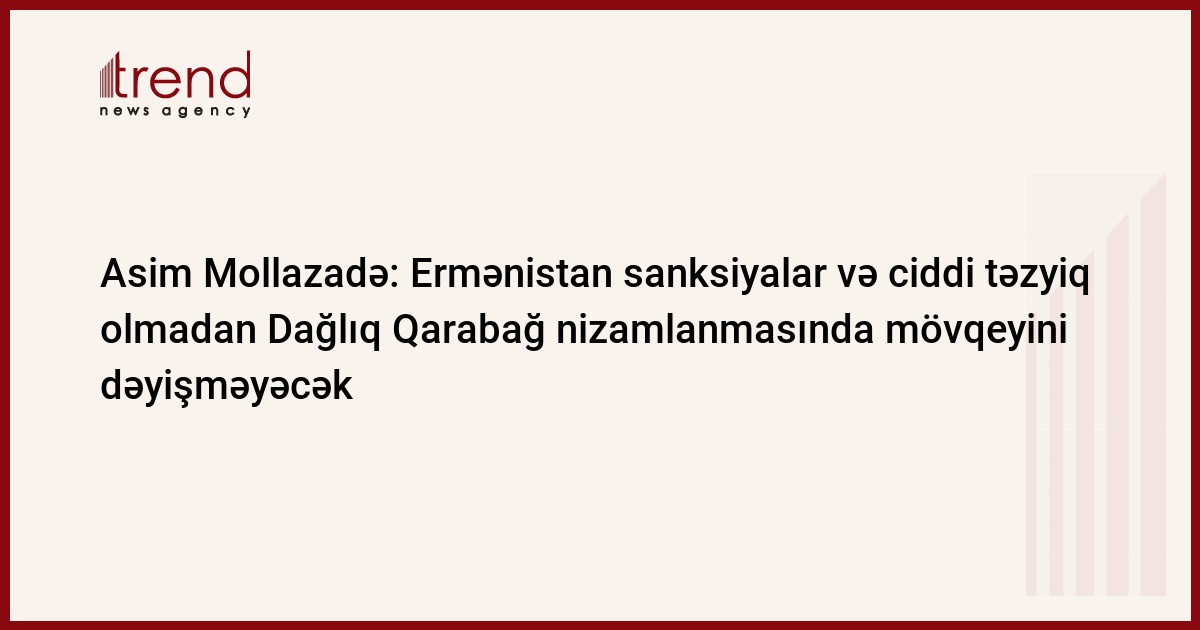 Ermənistan sanksiyalar tətbiq edilmədən və ciddi təzyiq olmadan Ermənistan-Azərbaycan, Dağlıq Qarabağ nizamlanmasında mövqeyini dəyişməyəcək. Azərbaycanlı politoloq, Demokratik İslahatlar Partiyasının sədri, Milli Məclisin deputatı Asim Mollazadə belə hesab edir.