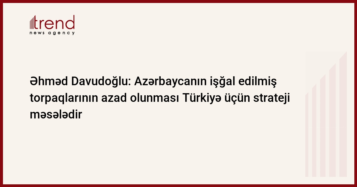 Azərbaycanın işğal edilmiş torpaqlarının azad olunması Türkiyə hökuməti üçün strateji məsələdir. Trend-in Anadolu agentliyinə istinadən verdiyi məlumata görə, bunu Türkiyənin Baş naziri Əhməd Davudoğlu ölkə parlamentində çıxışı zamanı bildirib.