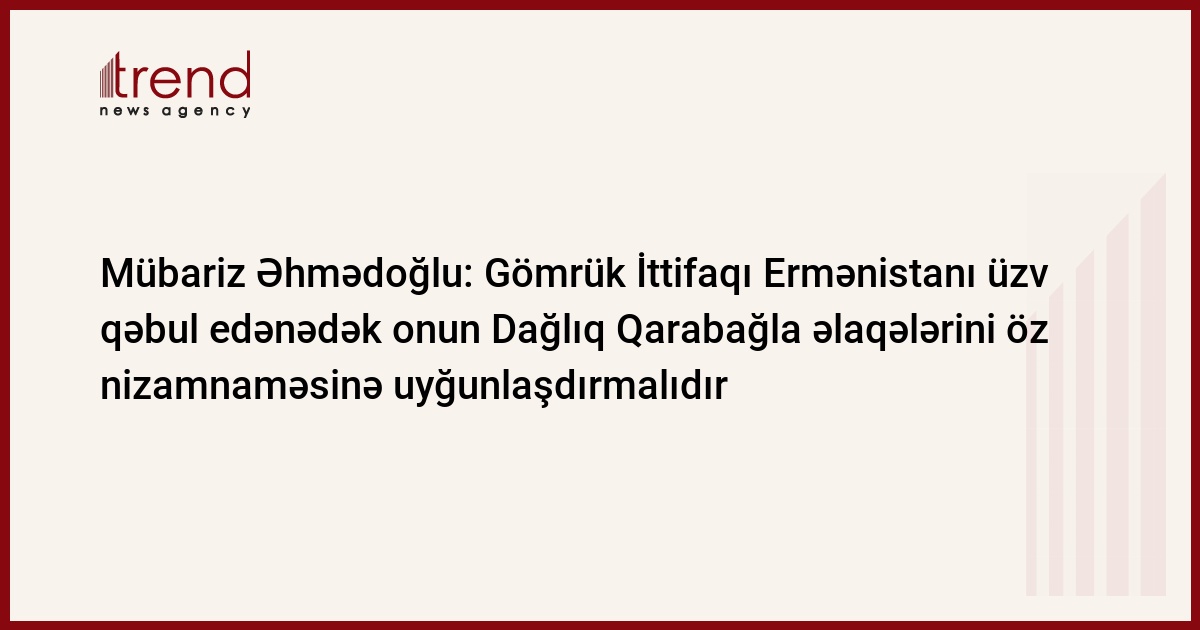Dağlıq Qarabağ məsələsi Gömrük İttifaqının və ya Avrasiya İqtisadi Birliyinin başının üstündə Domokl qılıncı kimi dayanır. Bunu Trend-ə Siyasi İnnovasiya və Texnologiyalar Mərkəzinin direktoru, politoloq Mübariz Əhmədoğlu deyib.