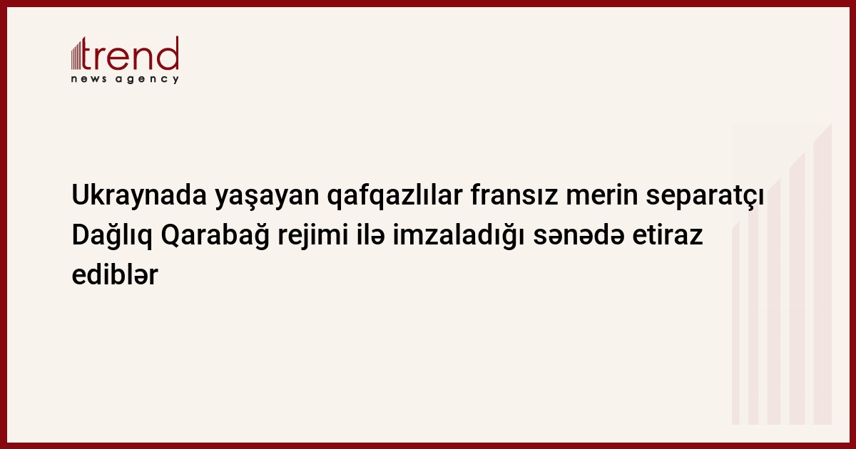 Ukraynada yaşayan qafqazlılar fransız merin separatçı Dağlıq Qarabağ rejimi ilə imzaladığı sənədə görə Fransanın və ATƏT-in Kiyevdəki səfirliklərinə etiraz bəyanatı göndəriblər.
