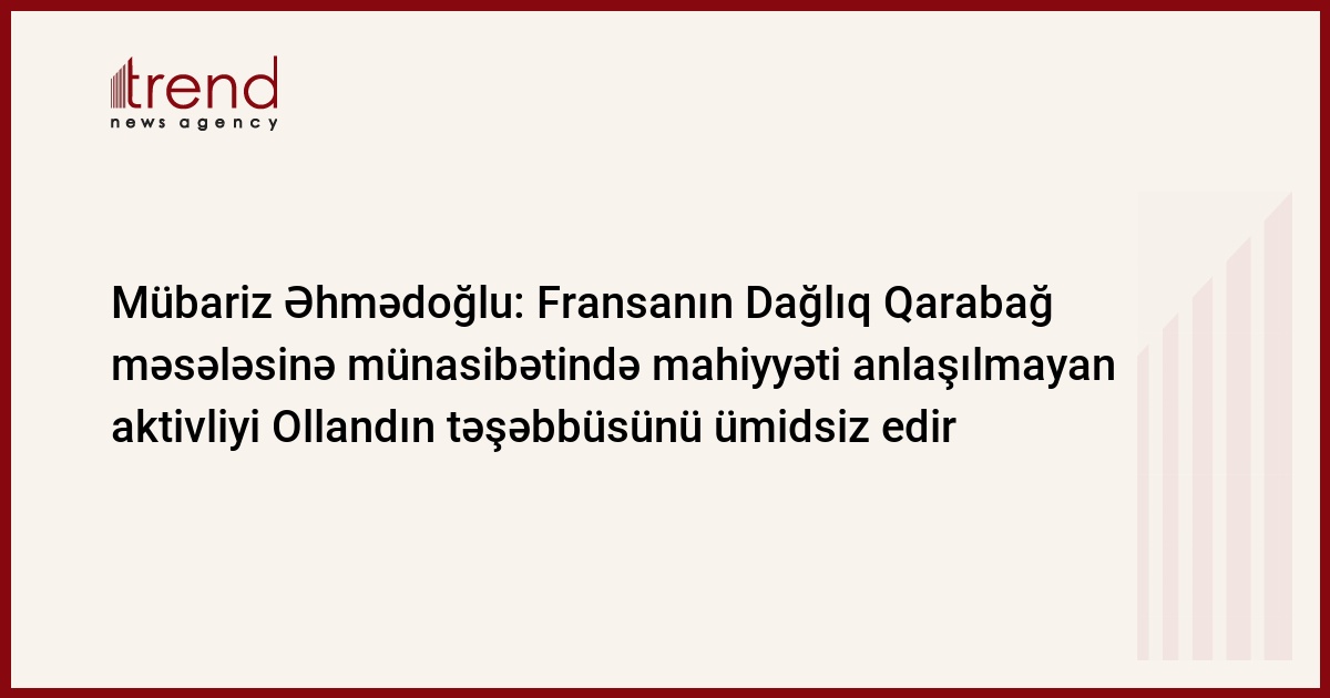 M.Əhmədoğlu vurğulayıb ki, F.Olland Dağlıq Qarabağ tənzimlənməsində ermənilərin tapdığı həlli düzgün həll hesab etmir və düzgün həlli tapmağı məsləhət bilir: "Bu barədə o, Ermənistanda olarkən açıq mətnlə bildirdi. Eləcə də F.Olland Dağlıq Qarabağ tənzimlənməsinə Gürcüstanı da qoşmaq istəyirdi. Kommunikasiya məsələsinə görə Gürcüstan Ermənistan üçün ən həyati vacib dövlətdir. Ollandın təşəbbüsü ilə prezidentlərin görüşünün hətta vaxtı bəlli olduğu zamanda Fransa parlamentarilərinin rəsmi Parisin bəlli mövqeyinin əleyhinə getməsi Fransa dövlətçiliyinin güclü olmadığının əlamətidir. Heç bir seçki və ya siyasi kompaniya naminə parlamentarilər rəsmi mövqenin bu qədər əleyhinə getməməlidir. İkinci parametr Ermənistan və Dağlıq Qarabağda "müstəqillik ildönümləri"ndən sonra bu aktivliyin baş verməsidir. Fransız parlamentarilər 2 sentyabr ətrafında və ya 23 sentyabrdan əvvəl səfər edib bu tədbirlərdə iştirak etsəydilər, səfərlərin mahiyyətini müəyyən qədər anlamaq olardı".