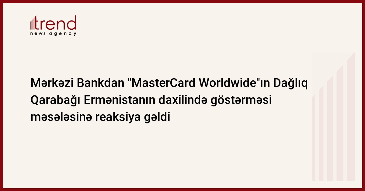 Bu barədə Trend-ə "MasterCard" Dağlıq Qarabağı Ermənistanın tərkib hissəsi kimi göstərir. Mərkəzi Bank bundan xəbərdardırmı? Əgər xəbərdardırsa, indiyədək bunun qarşısı niyə alınmayıb?" suala cavabda Mərkəzi Bankın mətbuat xidmətindən məlumat verilib.