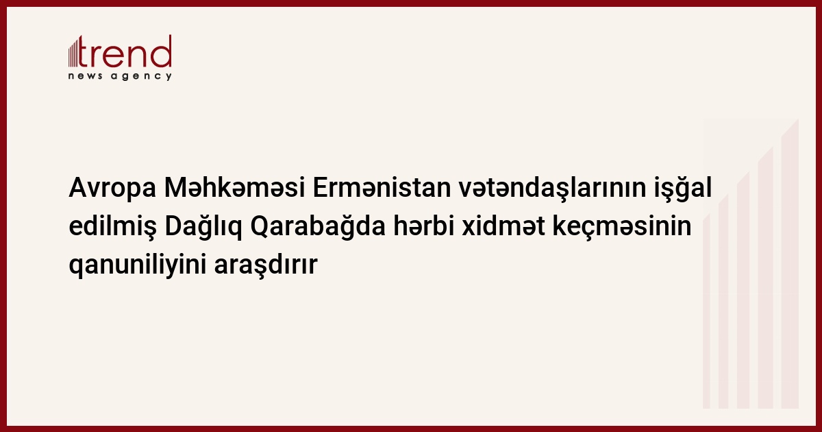 Avropa İnsan Haqları Məhkəməsi Ermənistan vətəndaşlarının Azərbaycanın işğal edilmiş Dağlıq Qarabağ regionunda orduda xidmət keçmək üçün əsasları ilə əlaqədar rəsmi Yerevana müraciət edib.