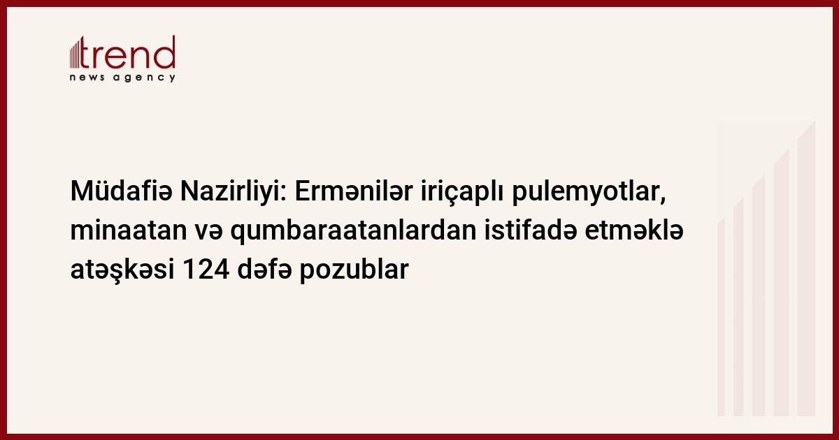 Müdafiə Nazirliyi bildirir ki, erməni silahlı bölmələri cəbhənin müxtəlif istiqamətlərində iriçaplı pulemyotlar, minaatan və qumbaraatanlardan da istifadə etməklə sutka ərzində atəşkəs rejimini ümumilikdə 124 dəfə pozub.