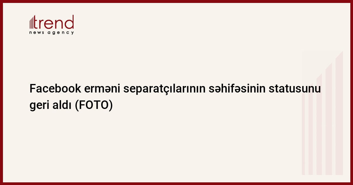 Trend xəbər verir ki, bir müddət əvvəl erməni işğalçıların Facebook sosial şəbəkəsində açdıqları və qondarma "Dağlıq Qarabağ Respublikası"na həsr olunmuş səhifənin rəsmi təsdiqlənmiş statusu götürülüb.