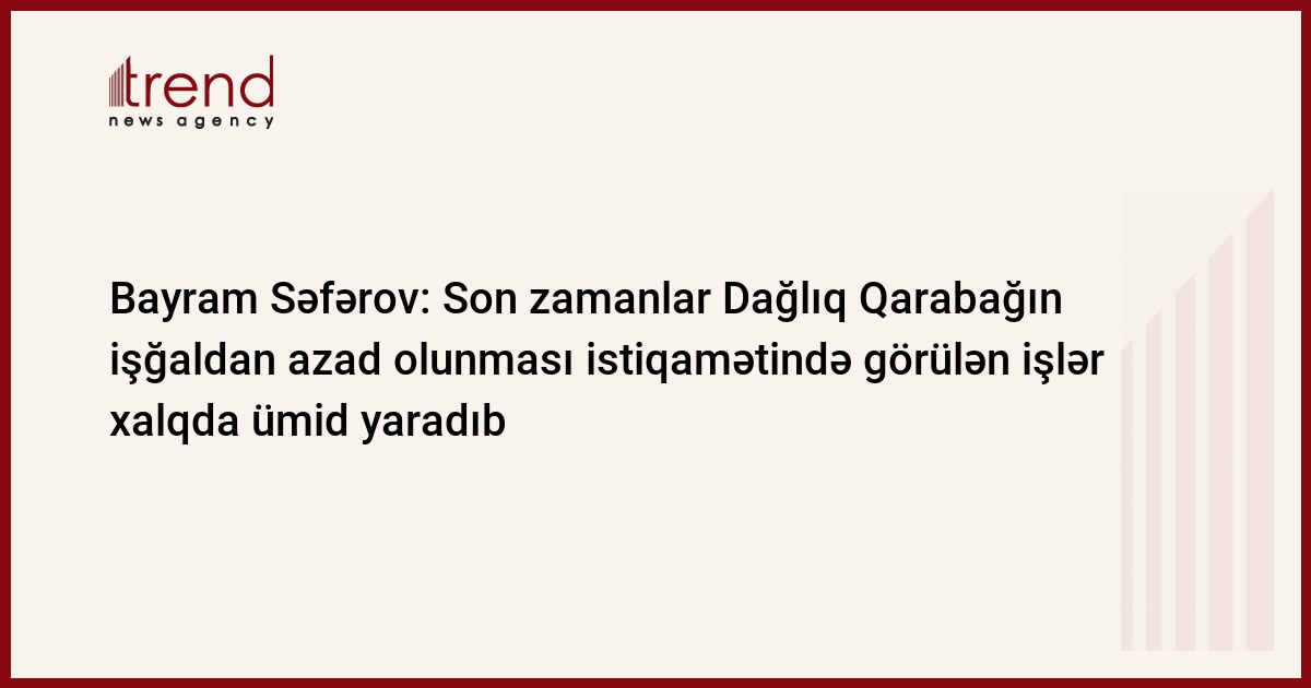 Trend-in məlumatına görə, "Dağlıq Qarabağın Azərbaycanlı İcması" İctimai Birliyinin sədri, Şuşa Rayon İcra Hakimiyyətinin başçısı Bayram Səfərov bildirib ki, Azərbaycan xalqı Şuşanın işğalı ilə barışmır: "Son zamanlar Dağlıq Qarabağın işğaldan azad olunması istiqamətində görülən işlər xalqda bir ümid yaradıb. Son dövrlərdə xalqımızın ümidi daha çox artıb".
