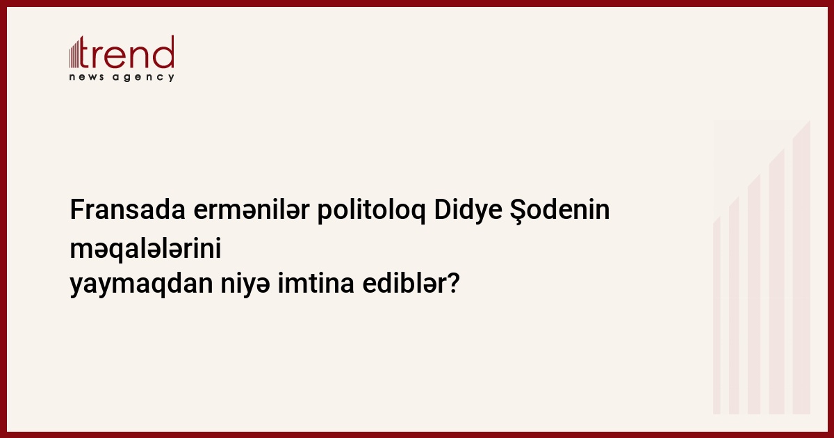 Bu günlərdə Qarabağ münaqişəsi ilə bağlı öz fikirlərini mətbuatda açıqlamaq istəyən fransalı politoloq Didye Şodenin kiçik həcmli məqalələri bir çox redaksiyalarda işləyən erməni jurnalistlər tərəfindən əsl senzuraya məruz qalıb və onun məqalələrini yaymaqdan imtina ediblər.